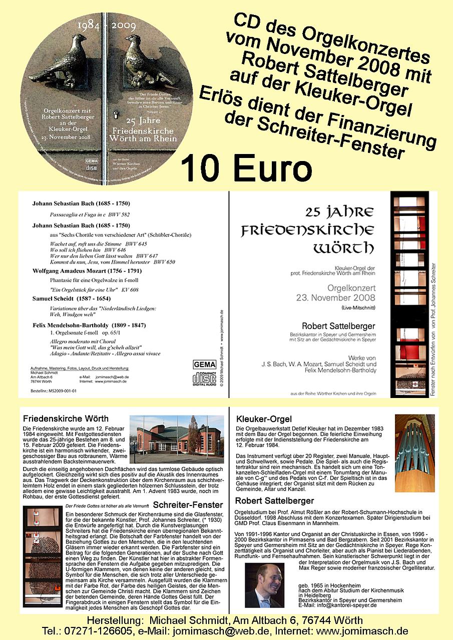 Der Erlös aus dem Verkauf der CD ist zur Finanzierung der SCHREITER-Fenster bzw. für den Unterhalt der Kleuker-Orgel in der Friedenskirche bestimmt.